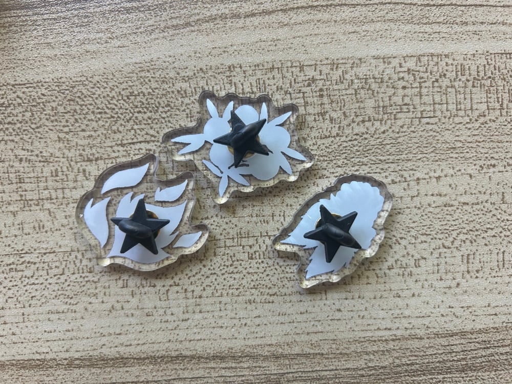 Each charm is high-quality acrylic. Feel free to put this on bags, hats, or any other fabric or surface you see fit!