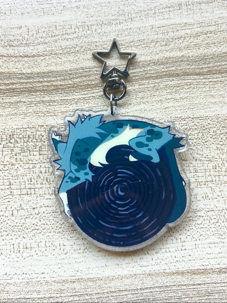 Each double-sided charm is high-quality acrylic with cute little shaker charms of the The Broken Code protagonists! Comes with a pretty star-shaped keyring for you to use to hang on bags, keys, or anything else you put your mind to!