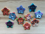 27 different unique button pins with protagonists from every warrior cats series from The Prophecies Begin up to the newest unreleased series Changing Skies! Feel free to stick these on backpacks. coats, hats, anywhere you see fit!